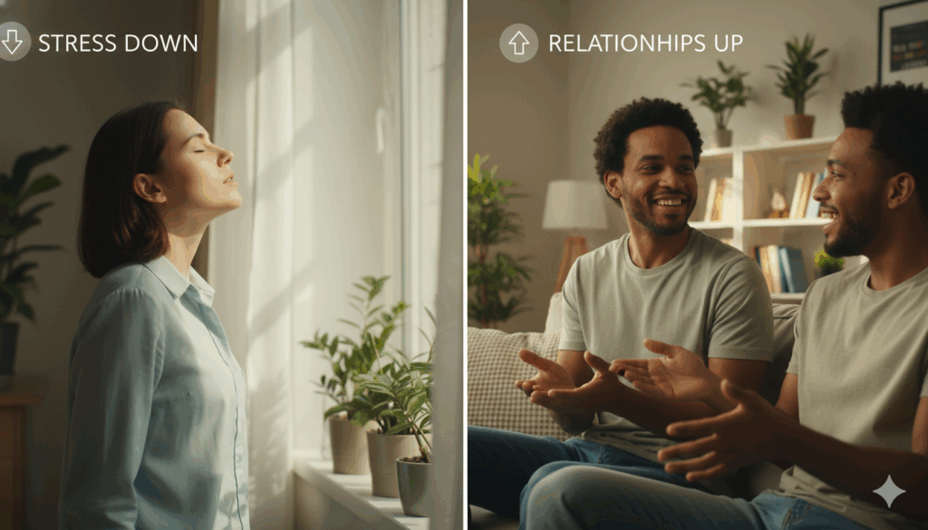 - Relaciones más limpias: sin rencores acumulados, hay más presencia, escucha y respeto mutuo.